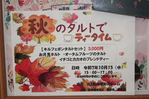 10月のカフェは「秋のタルトでティータイム」を開催