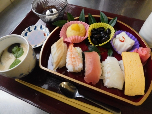 - 握り寿司(まぐろ・たい・えび・煮穴子・玉子)