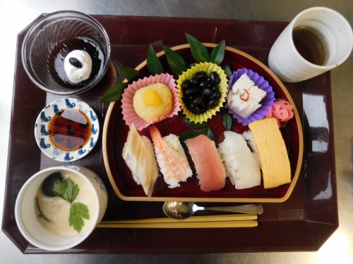 お正月のごちそうとして、人気の高い握り寿司を提供しました。