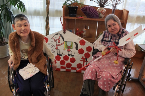 年女の利用者さんと一緒に